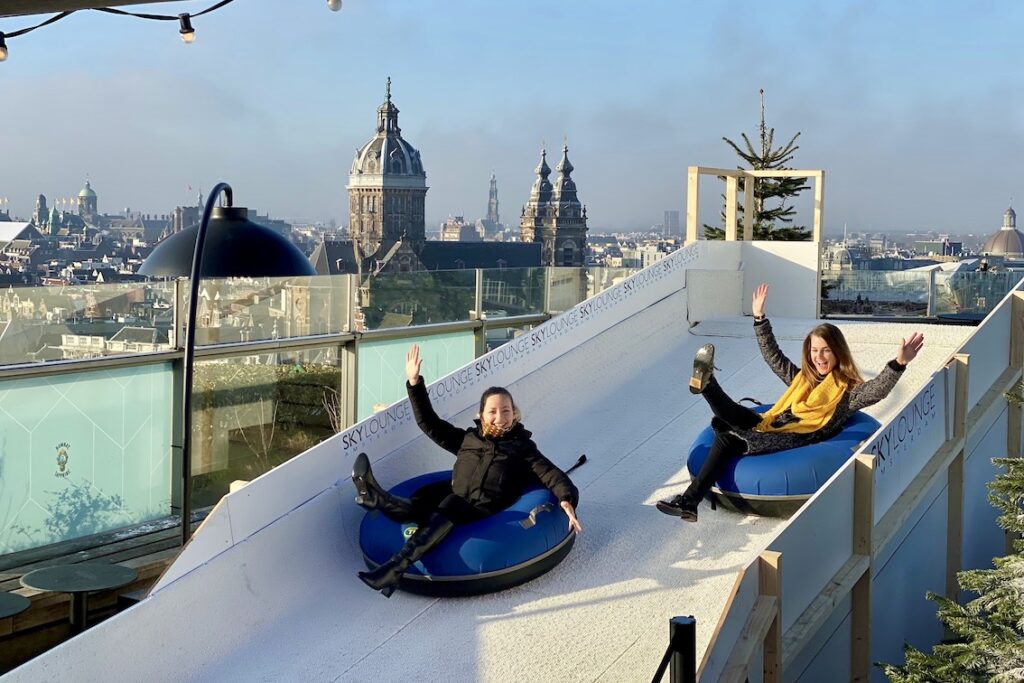 SkyLounge Amsterdam heeft de – naar eigen zeggen – hoogste bobsleebaan van de hoofdstad geopend. De attractie is gerealiseerd op de elfde etage van hotel DoubleTree by Hilton Amsterdam Centraal Station. Het dakterras is omgetoverd in winterse sferen, inclusief prachtig uitzicht.