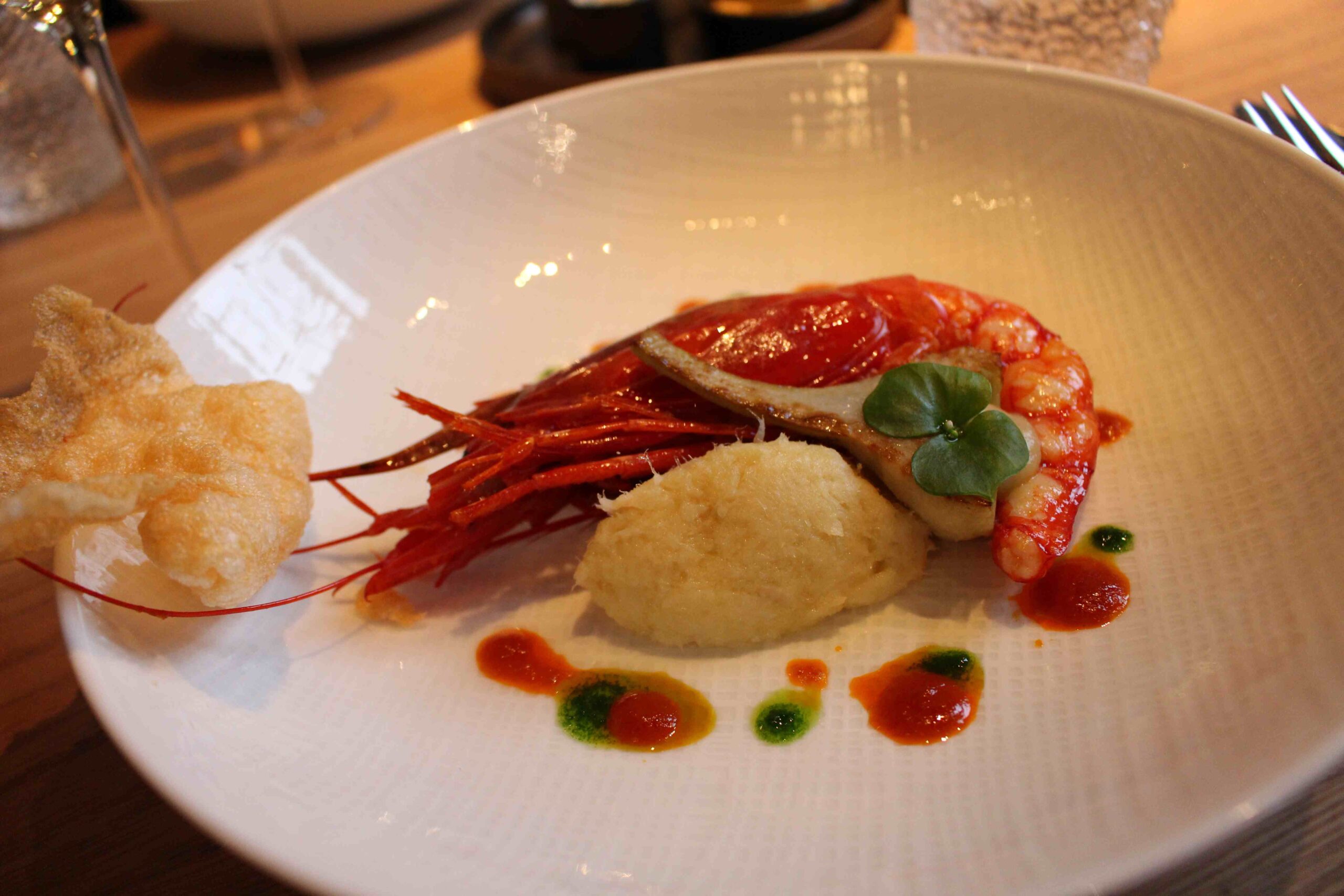 Daarna volgen de Portugese diepzeegarnaal carabineiro met bacalhau, artisjok en chorizo-olie, en de Hollandse melkgeit met ravioli met Portugese schapenkaas, knolgroente en jus van geit met kamille.