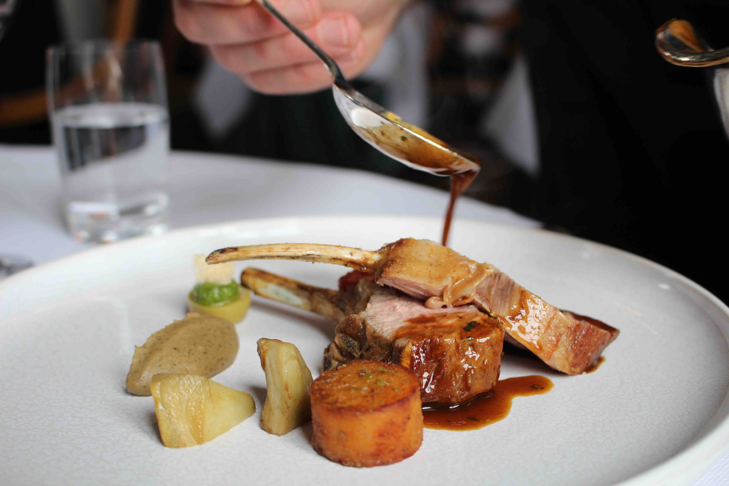 Inmiddels in het glas en fruitige Italiaan van Capitel della Crosara, Valpolicella Ripasso. Voor de kenners: een DOC-wijn. Als hoofdgerecht genieten we de romige smaak van Texelaar zuiglam, gebakken in de pan en gearroseerd met boter. Met daarbij gepofte aubergine met Parmezaan, gevulde olijf met cremolata, pommes fondant, artisjok en een klassieke kruidenjus ‘Provencal’.