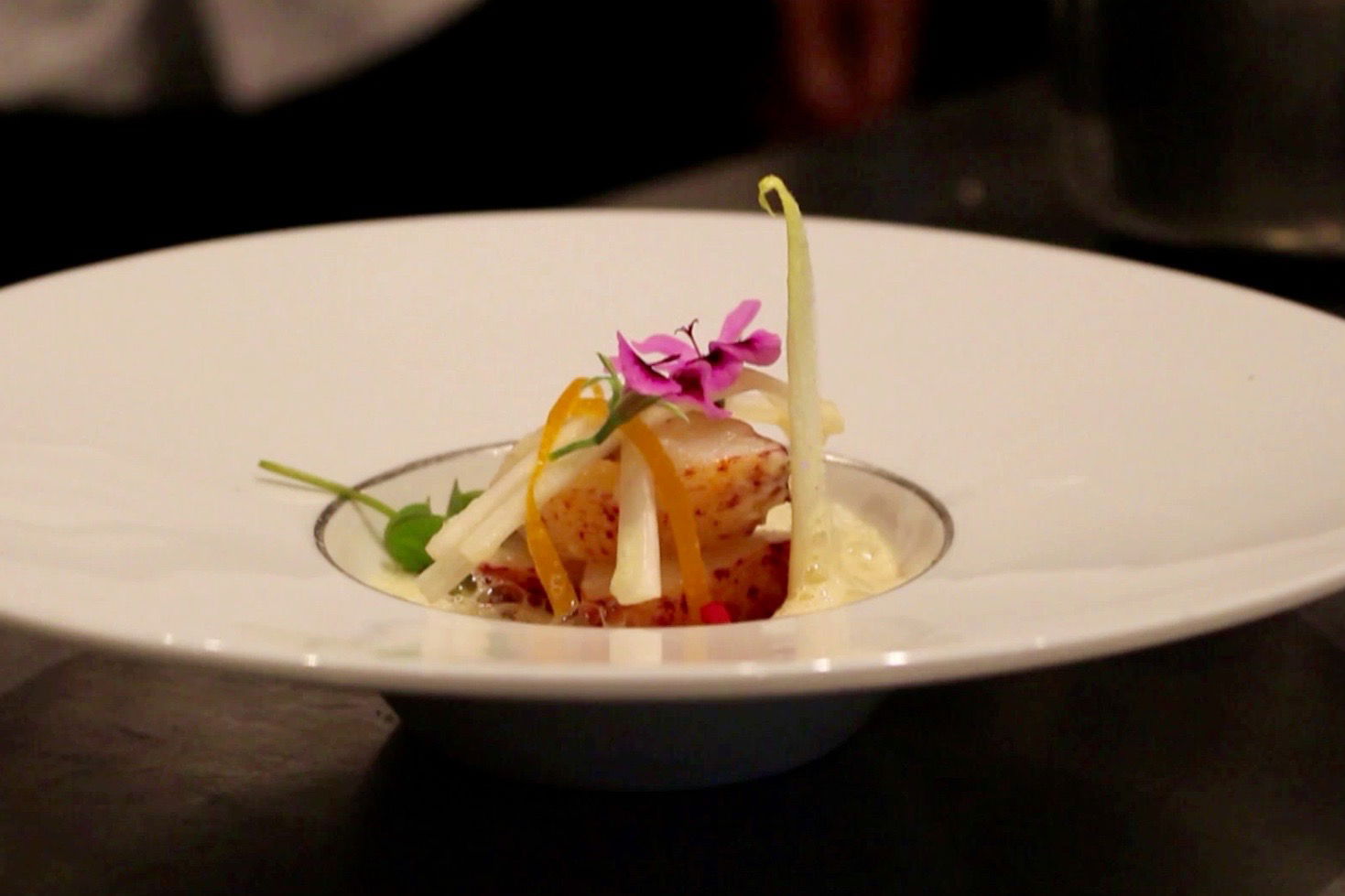 In de keuken van het met één Michelinster bekroonde restaurant Basiliek toont Rik Jansma zijn zacht gegaarde kreeft met witlof, jus van ossenstaart en gekonfijte grapefruitschil.