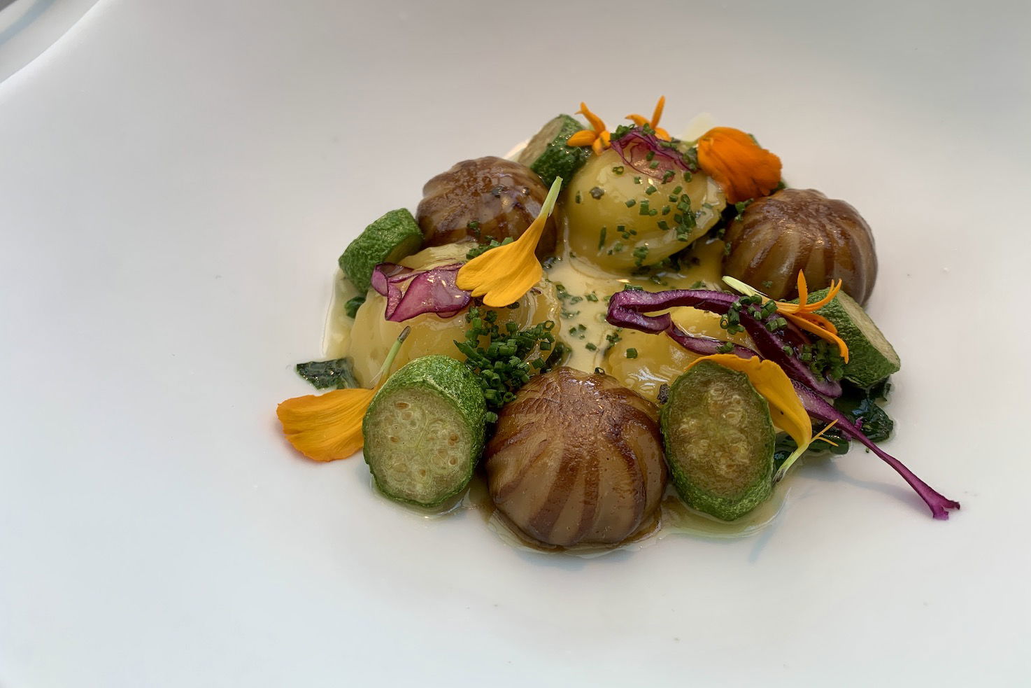 We hebben dan al gesmuld van de terrine van ganzenlever en gerookte paling met rode biet en 25 jaar gerijpte aceto balsamico. De bijbehorende wijn komt uit Frankrijk en is een Montlouis ‘Les Borderies’ 202 van Rochers des Violettes uit de Loire.