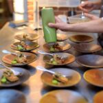 Beide chefs hebben op hun eigen persoonlijke en kenmerkende manier herinneringen aan de rijsttafel en laten dat terugkomen in het feestmaal dat wordt gepresenteerd.
