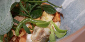 Zelfs de schillen krijgen een tweede leven. ‘Die gebruiken we weer voor de saus. Dat is voor mij koken. Alles benutten.’