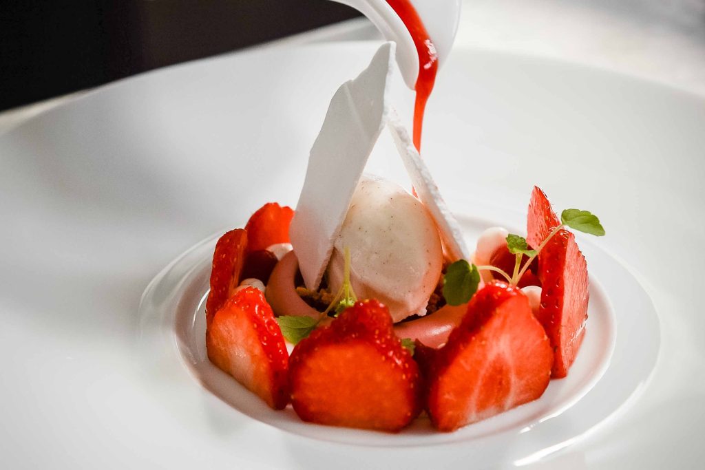 Hij rekent het bijna uit. Een goed welkom, een mooi ingeschonken glas wijn, een prettig afscheid. ‘Het is een totaalplaatje. Wij komen met de keuken ook aan tafel. Dat hoort erbij.’ Met menuprijzen van 75 euro voor vier gangen tot 99 euro voor zeven gangen bewaakt hij de prijs-kwaliteitverhouding scherp. ‘Uit eten gaan kost veel geld. Dan moet het kloppen.’