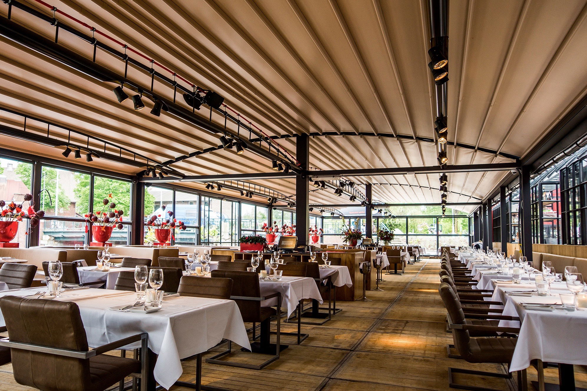 De uitstraling is ‘stoer rebels’. ‘Vanwege de verwerking van verschillende materialen, zoals hout en staal. De strak vormgegeven bar zorgt voor een intieme sfeer en het hele jaar door kan onder alle weersomstandigheden aan het water worden genoten van de mooiste plekjes van de stad.’